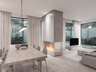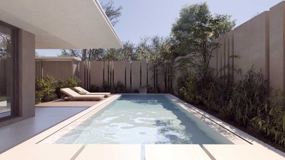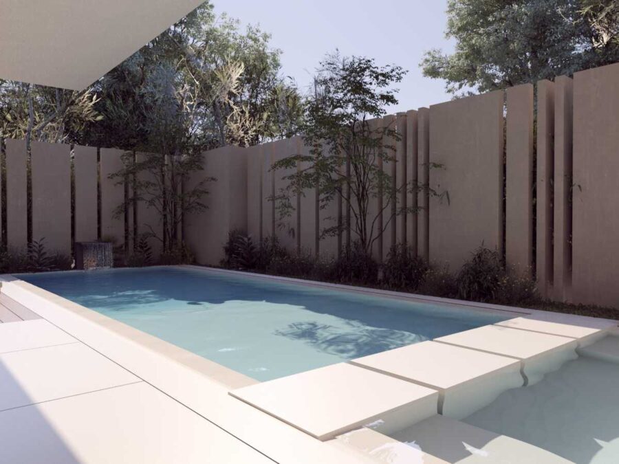 Inside, Melissa delivers on every promise of functional luxury: two stylish bedrooms and three full bathrooms, including a stunning master suite with walk-in wardrobe, private boudoir, and en-suite bathroom. Floor-to-ceiling glass doors connect every room to the garden, blurring the line between indoors and out. The entire space feels light, open, and surprisingly expansive — it lives like a home twice its size.